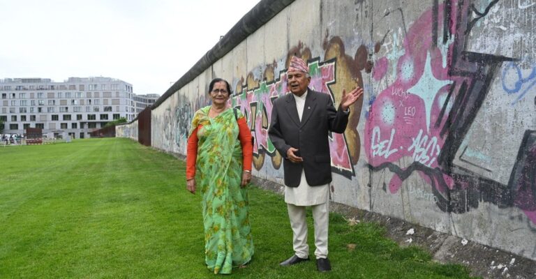 काठमाडौँ, ३ असार । मित्रराष्ट्र जर्मनीको भ्रमणमा रहेका राष्ट्रपति रामचन्द्र पौडेलले आज तत्कालीन पूर्वी र पश्चिम जर्मनीबीचको भत्किएको बर्लिनको पर्खाललगायत एतिहासिक स्थलको अवलोकन गरेका छन् । सो अवसरमा प्रथम महिला सविता पौडेलसहित भ्रमण दलका अन्य सदस्यहरु पनि सहभागी थिए ।