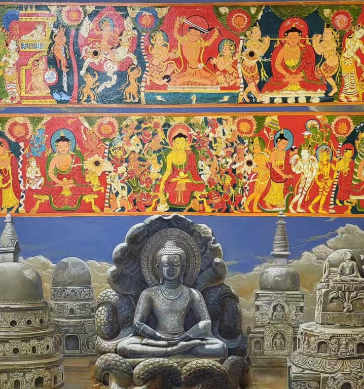 प्रदर्शनीमा शशीविक्रम शाह, वैत्यगोपाल वैद्य, कृष्ण मानन्धर, मदन चित्रकार, गौतम मानन्धर, नवीन्द्रमान राजभण्डारी, लोक चित्रकार, सुनिल रञ्जीत, देविना मल्ल, सुष्मा शाक्य, देवेन्द्र पाण्डे, भावना मानन्धर, सम्झना राजभण्डारी, चन्द्रश्याम डङ्गोल, मनिषलाल श्रेष्ठ, सौरगङ्गा दर्शनधारी, कृष्ण गोपाल श्रेष्ठ, मुकेश श्रेष्ठ, कुलदिप जङगबहादुर गुरुङ, विजय महर्जन, सुर्जामणि शाक्य, मनोज शाक्य मञ्जु, सौगात शाक्य, निपुर्ण बज्राचार्य, सौगात श्रेष्ठ गरी २५ जना पाका कलाकारका सिर्जना राखिएका छन् । रासस