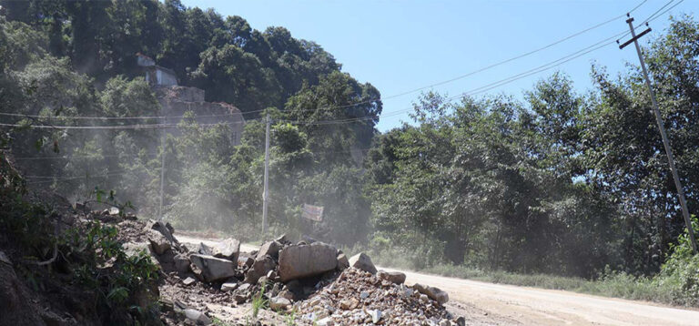 चार किलोमिटर लम्बाइको सो सडकखण्डको ३२ किलो भन्ने स्थानमा माथिबाट लेदो बग्दा सडक अवरुद्ध हुँदा आवागमनमा कठिनाइ भएको हो । लेदो पन्छाएर एकतर्फी रुपमा सवारी सञ्चालनमा ल्याइएको प्रमुख जिल्ला अधिकारी सूर्य सेढाइँले जानकारी दिए ।