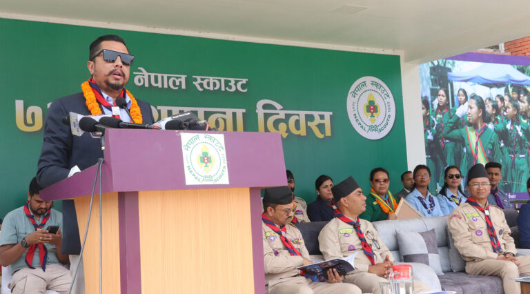 काठमाडौँ, ५ असार । युवा तथा खेलकुदमन्त्री विराजभक्त श्रेष्ठले नेपाल स्काउट समय सापेक्ष रुपान्तरण हुनुपर्ने बताएका छन् । ७३औँ स्थापना दिवसको सन्दर्भमा आज यहाँ आयोजित कार्यक्रममा उनले परिवर्तन आत्मसाथ गर्दै स्काउटको मूल्य मान्यता यथावत् राख्नुपर्ने बताए ।