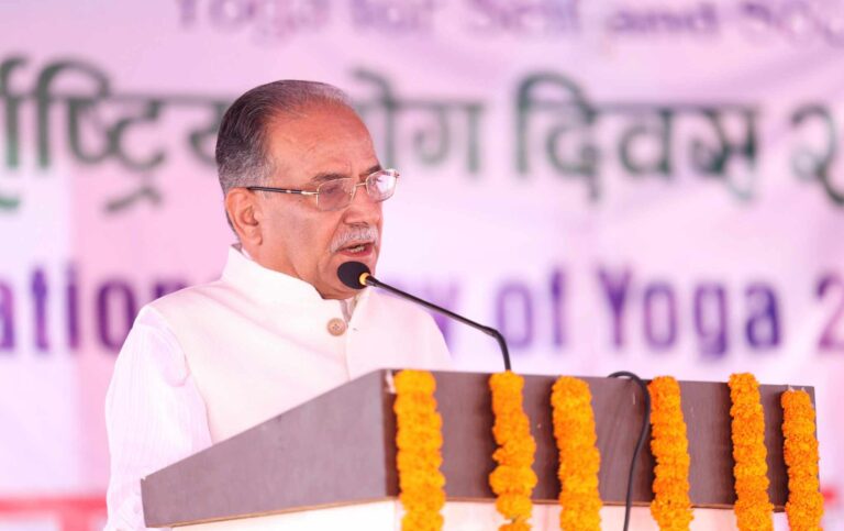 काठमाडौँ, ७ असार । प्रधानमन्त्री पुष्पकमल दाहाल ‘प्रचण्ड’ले प्राकृतिक हिसाबले नेपाल संसारभरका मानिसका लागि योगाभ्यासको सुन्दर भूमि भएको बताएका छन् ।