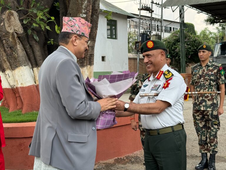 काठमाडौं, ७ असार । रक्षामन्त्री हरिप्रसाद उप्रेतीले विपद् व्यवस्थापनको लागि तयार भएर बस्न नेपाली सेनालाई निर्देशन दिएका छन् । शुक्रबार मन्त्री उप्रेतीले नेपाली सेना अन्तर्गतको उपत्यका पृतना हेडक्वार्टरको वस्तुस्थितिको अवलोकन तथा निरीक्षण गर्दै सो निर्देशन दिएका हुन् ।