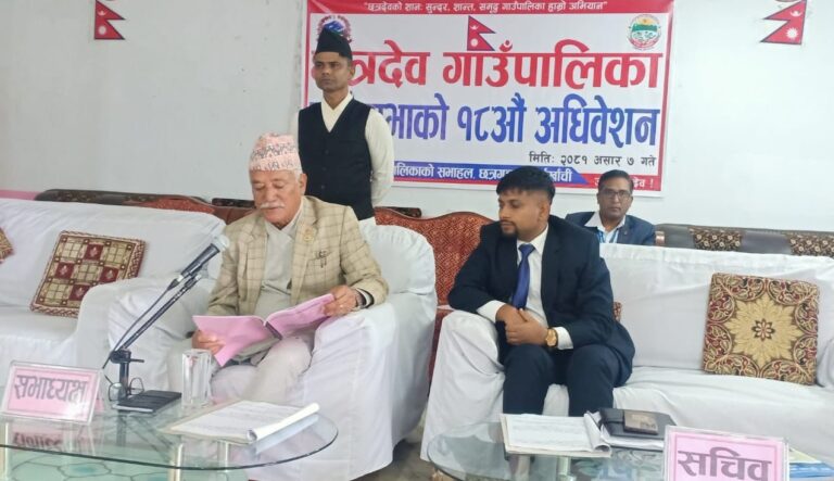 काठमाडौं, ८ असार । देशभरिका स्थानीय तहमा नयाँ आर्थिक वर्ष २०८१/०८२ का लागि नीति तथा कार्यक्रम प्रस्तुत हुन सुरु भएसंगै अर्घाखाँची जिल्लाको छत्रदेव गाउँपालिकाले पनि नयाँ आर्थिक वर्षका लागि नीति तथा कार्यक्रम प्रस्तुत गरेको छ । शुक्रबार गाउँपालिका अध्यक्ष चन्द्रमान श्रेष्ठले नयाँ आर्थिक वर्षका लागि नीति तथा कार्यक्रम प्रस्तुत गरेका छन ।