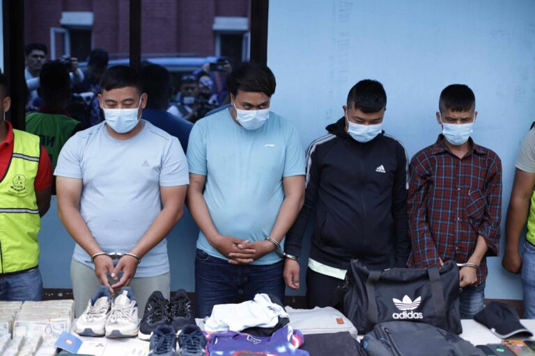 काठमाडौं, ११ असार । प्रहरीको केन्द्रीय अनुसन्धान व्यूरो (सीआईबी) को टोली भन्दै व्यक्तिको घरमा पसेर करिब २ करोड रुपैयाँ लुटपाट गर्ने ४ जनालाई पक्राउ परेर प्रहरीले सार्वजनिक गरेको छ । भक्तपुरको ददिकोटका डिल्लीराज राउतको घरमा प्रहरी हवल्दार कृष्ण बहादुर बोहरासहित ५ जनाले सीआईबीको टोलीभन्दै प्रवेश गरेर दराजमा रहेको २ करोड रुपैयाँ लुटेर भागेको बताइएको छ ।