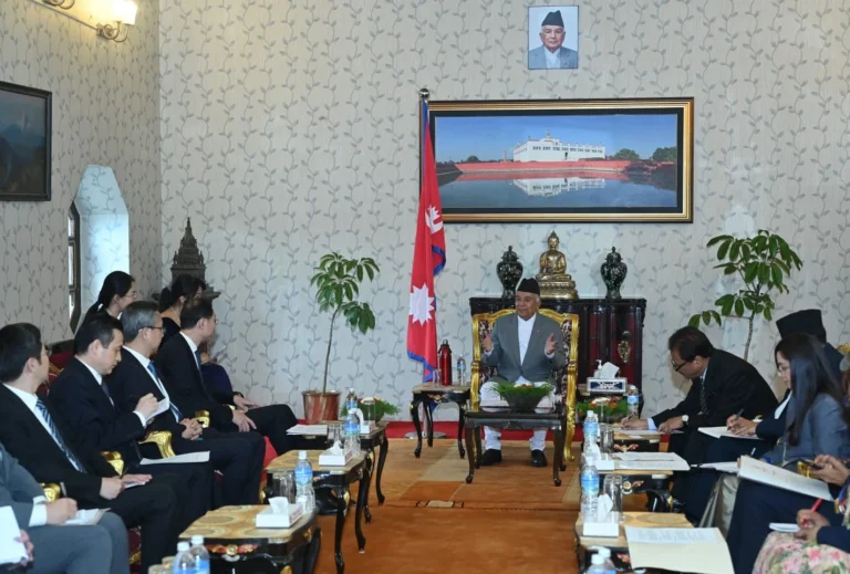 काठमाडौँ । राष्ट्रपति रामचन्द्र पौडेलसँग नेपाल भ्रमणमा रहेका मित्रराष्ट्र चीनका उपविदेशमन्त्री सुन वेइतोङले बुधबार राष्ट्रपति भवन शीतल निवासमा शिष्टाचार भेट गरेका छन् । सो भेटमा दुई पक्षीय हित, सहयोग र सम्बन्धका विविध पक्षमा कुरा भएको राष्ट्रपतिको स्वकीय सचिवालयले जनाएको छ ।