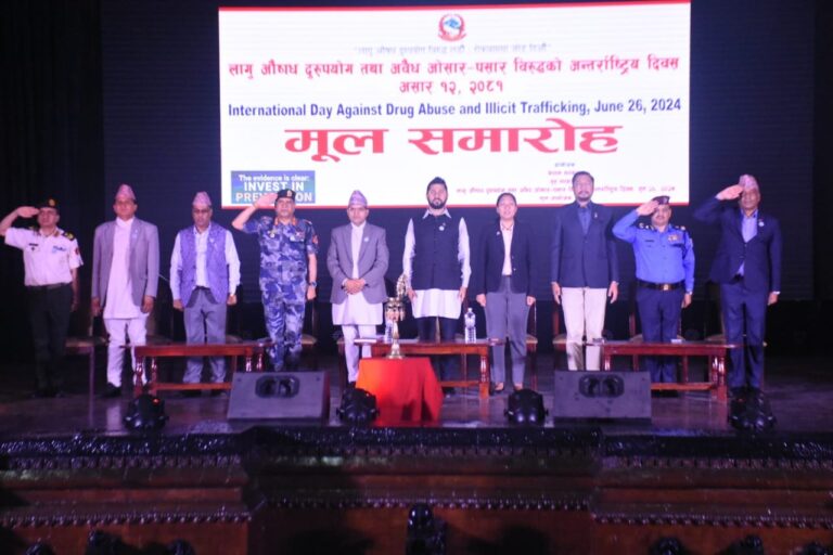 काठमाडौं । काठमाडौंमा लागुऔषध दुरुपयोग तथा ओसारपसार विरुद्धको अन्तराष्ट्रिय दिवस मनाईएको छ । गृहमन्त्रीले आयोजना गरेको सो र्यालिमा उपप्रधान तथा गृहमन्त्री रवि लामिछाने पनि सहभाी थिए ।