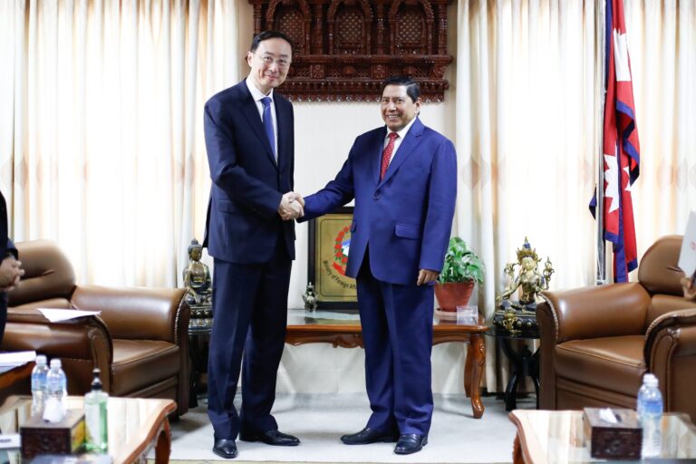 काठमाडौँ, १२ असार । उपप्रधानमन्त्री एवं परराष्ट्रमन्त्री नारायणकाजी श्रेष्ठसँग चीनका उपविदेशमन्त्री सुन वेइतोङले शिष्टाचार भेट गरेका छन् ।