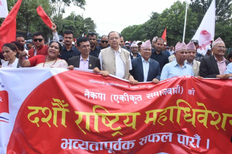 काठमाडौं, १६ असार । नेपाल कम्युनिस्ट पार्टी (एकीकृत समाजवादी) को १०औँ राष्ट्रिय महाधिवेशन आजबाट सुरु भएको छ । एकीकृत समाजवादीका नेता तथा कार्यकर्ताहरु काठमाडौंको भृकुटीमण्डपबाट कमलादीको प्रज्ञाप्रतिष्ठानसम्म र्यालीसहित पुगेका थिए । सो क्रममा विभिन्न सांस्कृतिक झाँकीसमेत प्रदर्शन गरिएको थियो ।