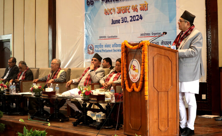 ६६औँ संसद् दिवसका अवसरमा पूर्वसांसद मञ्च नेपालको आयोजना तथा सङ्घीय संसद् सचिवालयको समन्वयमा आज यहाँ आयोजना गरेको कार्यक्रममा उनले संविधान कार्यान्वयन र कानुन कार्यान्वयनका विषयमा सरोकारवाला निकायसँग छलफल गर्नुपर्नेमा जोड दिए ।