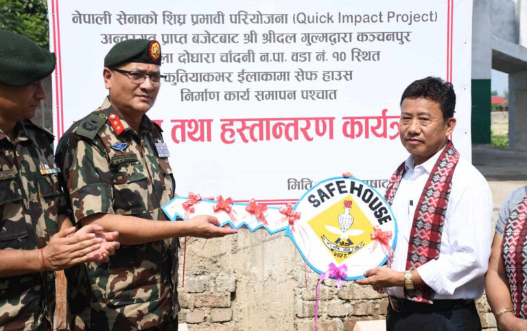 महेन्द्रनगर (कञ्चनपुर), १७ असार । कञ्चनपुरको दोधारा–चादँनी नगरपालिका–१० कुतियाकवरकी अम्बिका सुनारलाई बर्सेनि बाढीको त्रास रहन्थ्यो । कुतियाकवर महाकाली र जोगबुढा नदी तटीय क्षेत्रको वस्ती हो । त्यसैले ६७ वर्षीया सुनारलाई वर्षायाम सुरु भएपछि सधैँ बाढीको त्रास रहन्छ । तर यसपाली नेपाली सेनाले यहाँ सेफ हाउस (सुरक्षित घर) निर्माण गरेपछि सुनारलगायत स्थानीय ४२ परिवार बाढीको जोखिमबाट जोगिने भएका छन् ।