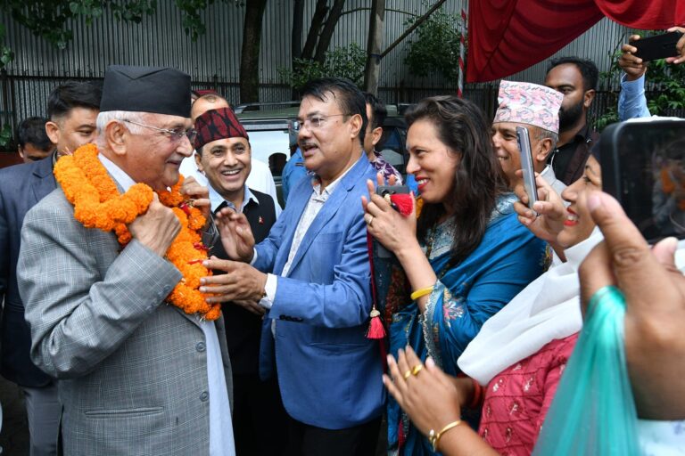 काठमाडौं,१८ असार । नेकपा एमालेका अध्यक्ष केपी शर्मा ओली कांग्रेस मुख्यालय सानेपामा पुगेका छन् । कांग्रेसका स्वर्गीय नेता गिरिजाप्रसाद कोइरालाको शताब्दीऔं जन्मजयन्तीको अवसरमा आयोजित ‘क्रान्तिदेखि शान्तिसम्म’ नामक फोटो प्रदर्शनी अवलोकनमा सहभागी हुन पूर्व प्रधानमन्त्री ओली सानेपा पुगेका हुन् ।