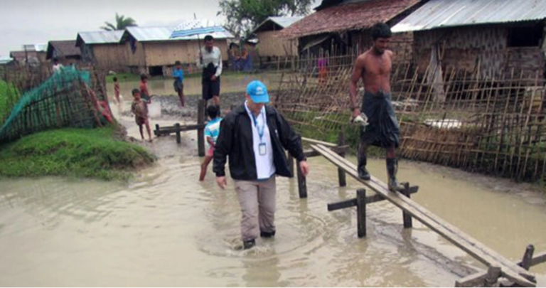 म्यानमाको बाढीमा हजारौँ बासिन्दाहरू फसे घरभित्रै