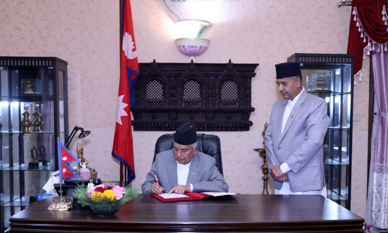 “राष्ट्रपति पौडेलले प्रतिनिधिसभाका सभामुखको सिफारिसमा नेपालको संविधानको धारा, १०६ को उपधारा ९१० बमोजिम खाँदबारी नगरपालिका–२ निवासी अधिकारीलाई सङ्घीय संसद्, प्रतिनिधिसभाको सचिव पदमा नियुक्त गर्नुभएको छ,” राष्ट्रपतिको कार्यालयले जारी गरेको विज्ञप्तिमा भनिएको छ । रासस