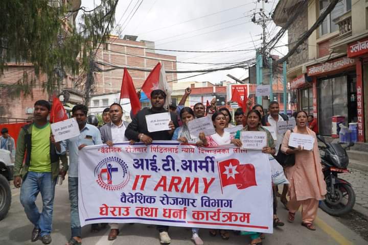 आईटी आर्मीका नेता राजनिश प्रसाद कुशवाहाले वैदेशिक रोजगारको क्षेत्रमा जताततै मनोमानी भईरहेकाले सर्वसधारण पीडित बनेको बताए । ‘लाखौं लाख युवासँग खर्बौैं रकम ठगी भइरहेको छ । ५, १० हजारको नाममा २ लाख, ५ लाख, १० लाख गरी लाखौंलाख अवैध असुली भइरहेको छ । विगत लामो समयदेखि भइरहेको असुलीलाई हामी रोक्न चाहन्छौं । असुली भएको रकम फिर्ता गराउन चाहन्छौं’ कुशवाहाले भने ।