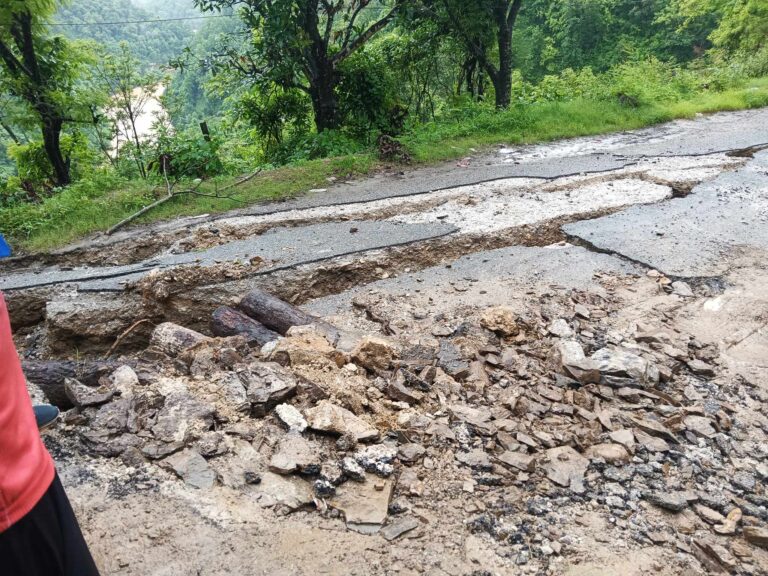 शुक्रवार बिहानदेखि अबिरल वर्षा नरोकिएपछि आज बिहान सडक भासिएको गल्याङ प्रहरीले जनएको छ । आँधिखोला किनार छेउवाटै जमिन धस्सिएकाले उद्वारमा समस्या भईरहेको छ ।