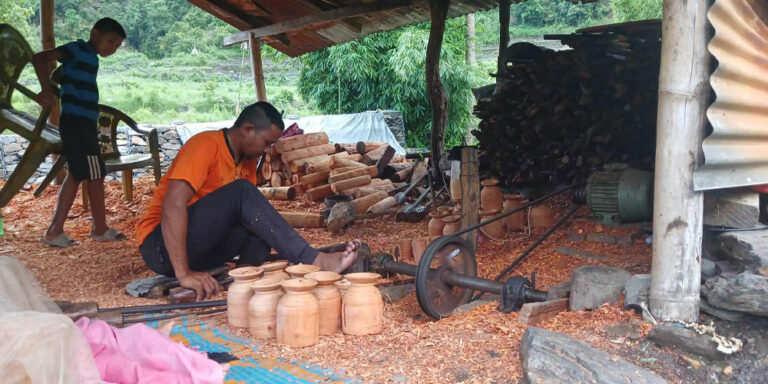 श्रीकृष्ण हस्तकला उद्योगको नाउँमा दर्ता भएको त्यही टहरोमा बनेका ससाना ठेकी, रक्सी राखिने कप, कप, कचौरा, थालदेखि करुवासम्मका सामग्रीहरु निर्माण हुने गर्दछन् । ३७ वर्षीय राजेन्द्र विकले आफ्नो पुख्र्यौली पेसालाई निरन्तरता मात्र दिएको छैन, व्यावसायिक रुपमा दारका सामग्री बनाई राम्रो आम्दानी पनि गरेका छन् ।