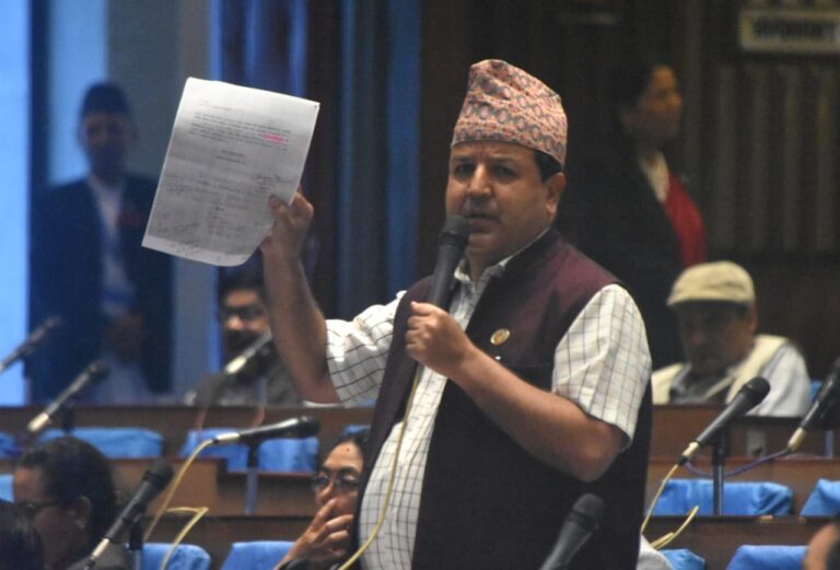 काठमाडौं, २३ असार । नेपाली कांग्रेसका नेता एवं प्रतिनिधि सभा सदस्य डा. सुनिल शर्माले प्रधानमन्त्री पुष्पकमल दाहाल ‘प्रचण्ड’ लक्षित गर्दै संसद् बैठकमा रामकृष्ण ढकालको गीत ‘ओराली लागेको हरिणको चाल भो’ सुनाएका छन् । उनले आफूले उक्त गीत आगामी असार २८ गते प्रतिनिधि सभाबाट विश्वासको मत लिन लागेको प्रधानमन्त्री प्रचण्डप्रति समर्पित गरेको पनि बताए ।
