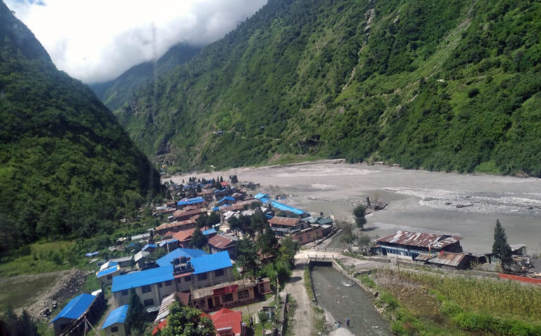 मनाङ, २५ मनाङ । अविरल वर्षापछि आएको बाढीले हिमाली जिल्ला मनाङमा क्षति पु¥याएको छ । नासों गाउँपालिका–१ तालगाउँलाई जोगाउन लगाइएको मेसिनरी पर्खाल आज बिहान भत्किएको छ ।
