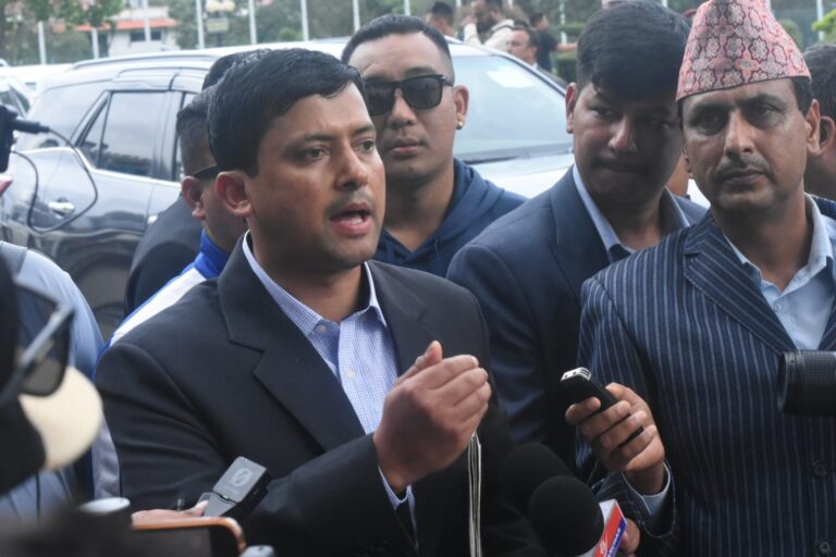 ‘राष्ट्रपति कार्यालयमा आजको परिणामको सूचना पुग्नुपर्यो । यो सूचना पुग्नासाथ सम्माननीय राष्ट्रपतिज्यूबाट आह्वान हुनेछ । पहिलाको अभ्यास हेर्दा मेरो विचारमा आज नै आह्वान हुनेछ । आजै आह्वान भयो भने त्यसै बमोजिम गर्नेछौं । अन्यथा आह्वान जतिखेर हुन्छ, त्यसपश्चात हाम्रो प्रक्रिया अगाडि बढ्छ । आजै आह्वान भयो भने हामी हाम्रो तर्फबाट दाबी लिएर जानेछौं,’– उनले भने । Photo by: Mukunda Kalikote/Reporters Nepal