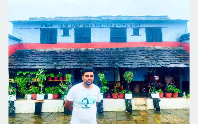 विसं २०६८ तिरको कुरा हो । वैदेशिक रोजगारीका लागि उनी दुबई पुगे । नौ वर्ष उतै बिताए । काम र कमाई ठिकै थियो । एक्कासि उनले दुबई त्यागेर घर फर्कने निधो गरे । “बाह्र घण्टा कामको बोझ र तनाव सहन कठिन भएपछि गाउँमै केही गर्ने सोच लिएर स्वदेश फर्के”, उनले भने, “गाउँ आएपछि बुबाले बनाएको पुरानो घरलाई प्रबलीकरण गरेर क्याम्पिङ र ‘होमस्टे’ व्यवसाय सुरु गरेँ ।”