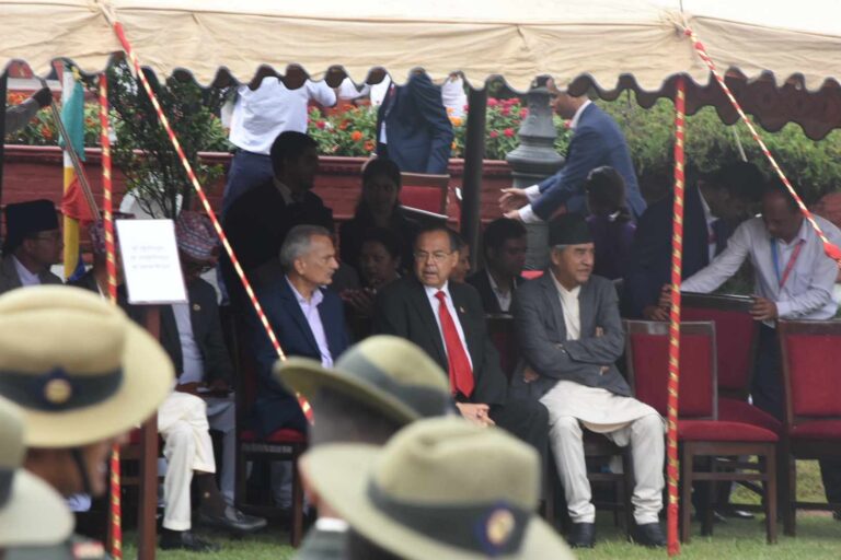 यस्तै, एमालेका मानवीर राई रक्षा, कांग्रेसका दीपक खड्का ऊर्जा, एमालेका राजकुमार गुप्ता संघीय मामिला, कांग्रेसका ऐनबहादुर शाही वन तथा वातारवरण मन्त्री बनेका छन् । फोटोः मुकुन्द कालिकोटे/रिपोर्टर्स नेपाल