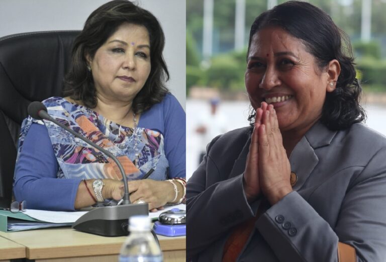 काठमाडौं, ३१ असार । प्रधानमन्त्री केपी शर्मा ओली नेतृत्वको वर्तमान सरकारमा दुई जना महिला मन्त्री भएका छन् । नेपाली कांग्रेसबाट डा. आरजु राणा परराष्ट्रमन्त्री बनेकी छिन् । यता, नेकपा (एमाले) बाट भने विद्या भट्टराई शिक्षामन्त्री बनेकी छिन् । प्रधानमन्त्री ओलीले २१ जना मन्त्री नियुक्त गरेका थिए ।