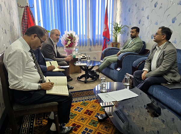 काठमाडौँ,२ साउन । खानेपानीमन्त्री प्रदीव यादव र नेपालका लागि एसियाली विकास बैंक (एडिबी) का देशीय निर्देशक अर्नाउड कौकोइसबीच आज मन्त्रालयमा शिष्टाचार भेट भएको छ ।