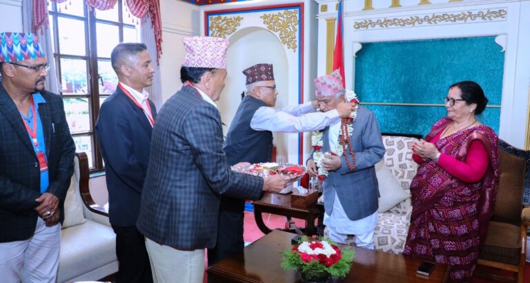 काठमाडौँ, ६ साउन । राष्ट्रपति रामचन्द्र पौडेललाई दोलखा भीमेश्वर मन्दिरको महाप्रसाद प्रदान गरिएको छ ।