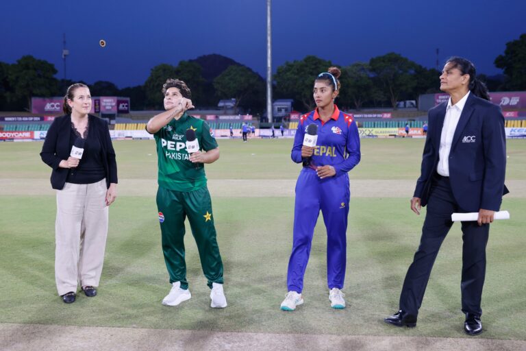 काठमाडौं । श्रीलंकामा जारी एसीसी महिला एसिया कप क्रिकेटमा आफ्नो दोस्रो खेलमा नेपाली महिला टिमले पाकिस्तानसाग खेल्दैछ ।