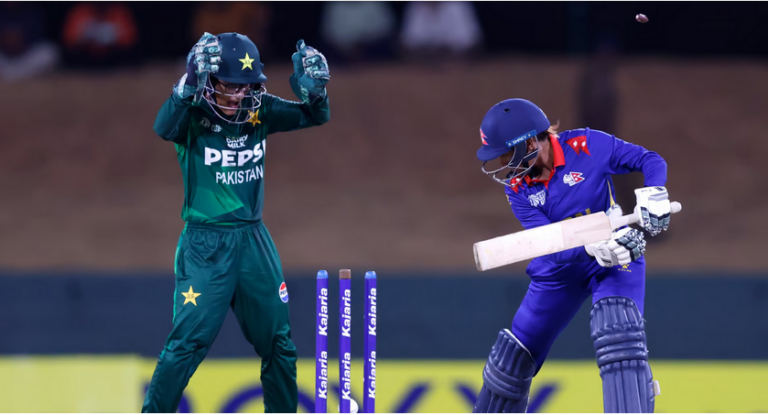 काठमाडौं, असार ७ । एसिसी महिला एसिया कप क्रिकेट प्रतियोगितामा नेपाल पाकिस्तानसँग पराजित भएको छ । श्रीलङ्काको दम्बुला अन्तर्राष्ट्रिय क्रिकेट मैदानमा सम्पन्न खेलमा नेपाल पाकिस्तानसँग नौ विकेटले पराजित भएको हो । जितको लागि नेपालले दिएको एक सय नौ रनको लक्ष्य पछाएको पाकिस्तान ११ दशमलव पाँच ओभरमा एक विकेट गुमाउँदै लक्ष्य पूरा गर्यो ।
