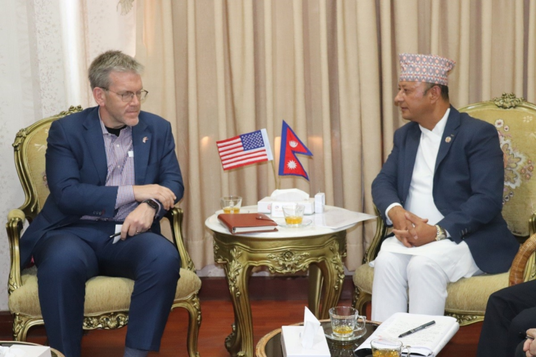 काठमाडौँ, १४ साउन । ऊर्जा, जलस्रोत तथा सिँचाइमन्त्री दीपक खड्का र नेपालका लागि अमेरिकी राजदूत डिन आर थम्पसनबीच भेटवार्ता भएको छ । ऊर्जा, जलस्रोत तथा सिँचाई मन्त्रालयमा आज भएको भेटमा उनीहरूबीच नेपाल—अमेरिका सम्बन्धका विविध विषयमा छलफल भएको थियो ।