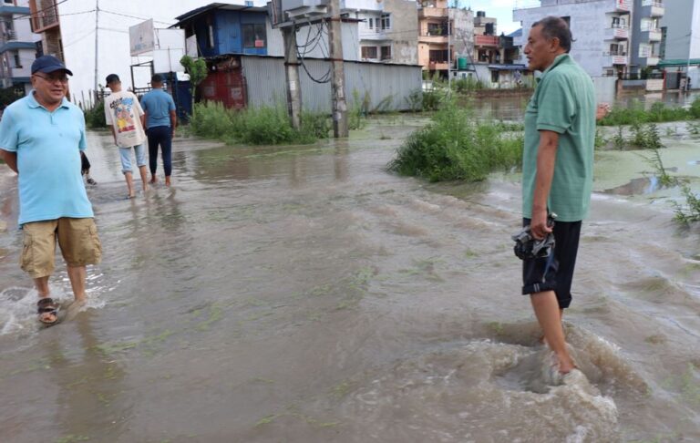 काठमाडौं, १६ साउन । मध्यपुरथिमि नगरपालिका‐५ राधेराधे, सङ्गम कोलोनी, कमेरोटार जग्गा एकीकरण आयोजना भित्रको तल्लो क्षेत्रका बासिन्दा गएरातिदेखि नै बाढीबाट प्रभावित भएका छन्। बस्तीभित्र बाढी पसेपछि सुरक्षित स्थानमा घरका सामान सार्ने र आफ्ना सवारीसाधन उच्चस्थानमा सार्न मै उनीहरू व्यस्त रहे।