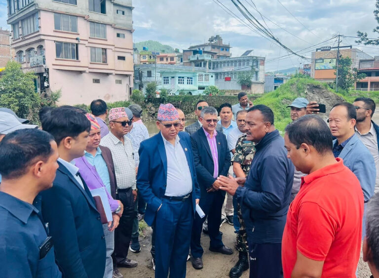 मन्त्री दाहालद्वारा बनेपाको डुबान क्षेत्र अवलोकन