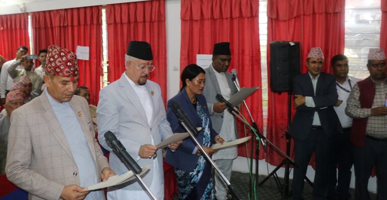 काठमाडौं,२० साउन । कर्णाली प्रदेश सरकारका नवनियुक्त मन्त्रीहरुले पद तथा गोपनीयताको शपथ लिएका छन् । आर्थिक मामिला तथा योजना मन्त्रालयमा राजिबविक्रम शाह, उद्योग मन्त्रालयमा सुरेश अधिकारी, सामाजिक विकास मन्त्रालयमा घनश्याम भण्डारी र ऊर्जा मन्त्रालयमा बिजया बुढाको नाम तोकेर शुक्रबार मुख्यमन्त्री यामलाल कँडेलले पद तथा गोपनीयताको शपथ लिएका हुन् ।