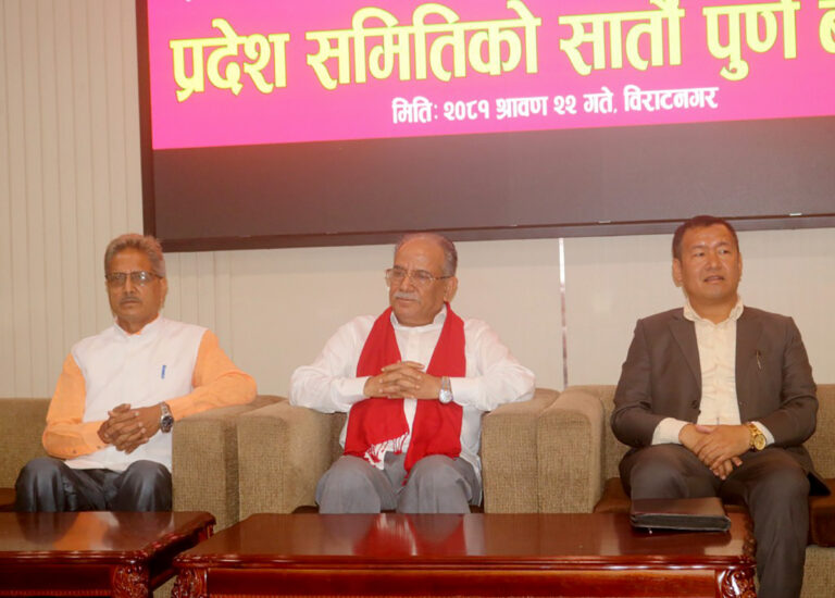 विराटनगर, २२ साउन । नेपाल कम्युनिष्ट पार्टी (माओवादी केन्द्र) का अध्यक्ष एवं पूर्वप्रधानमन्त्री पुष्पकमल दाहाल ‘प्रचण्ड’ले पार्टीलाई एकताबद्ध गर्ने प्रण गरेका छन् ।