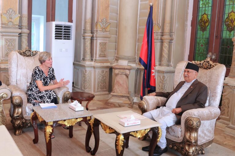 काठमाडौं,२३ साउन । प्रधानमन्त्री केपी शर्मा ओलीसँग नेपालका लागि युरोपियन युनियनका राजदूत भेरोनिक लोरेञ्जोले आज शिष्टाचार भेट गरेका छन् ।