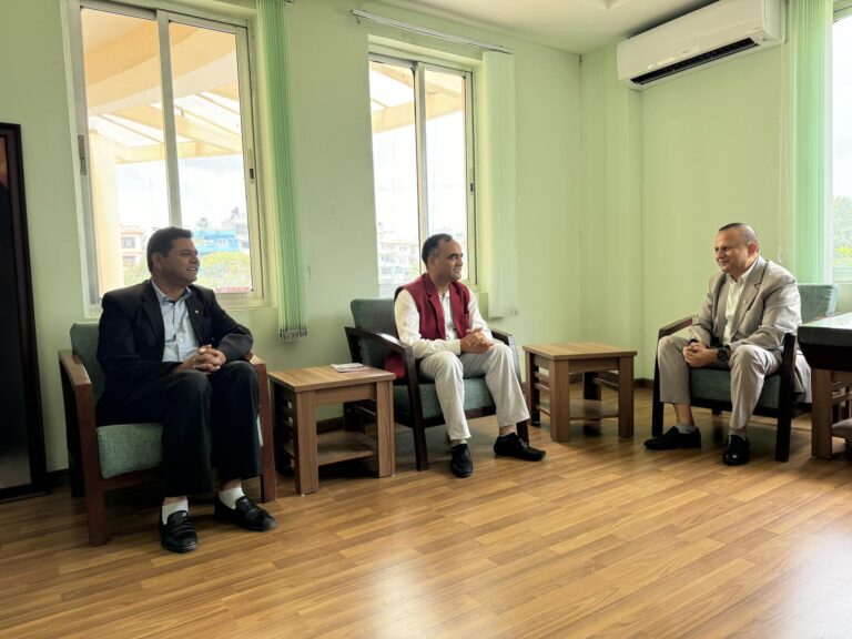 काठमाडौं, २५ साउन । नेपाली कांग्रेसका प्रभावशाली युवा नेता नैनसिंह महरले एमाले महासचिव शंकर पोखरेलसँग भेटवार्ता गरेका छन् । हिजो (बिहीबार) एमाले मुख्यालय पुगेका महरले समसामयिक राजनीतिक विषयमा महासचिव पोखरेलसँग कुराकानी गरेको जनाएका छन् ।
