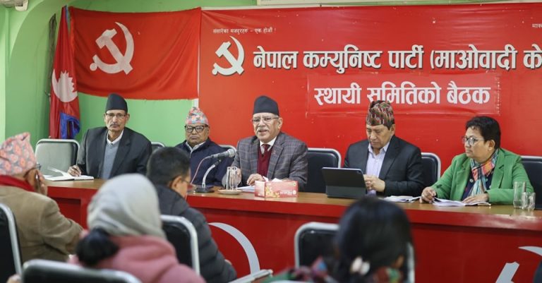 काठमाडौं, २६ साउन । नेकपा (माओवादी केन्द्र) को स्थायी कमिटी बैठक जारी रहेको छ । पार्टी केन्द्रीय कार्यालय पेरिसडाँडामा बैठक जारी रहेको हो । आजको बैठकमा सदस्यहरूले वैचारिक, राजनीतिक र साङ्गठनिक परिस्थिति तथा कार्यभारका सम्बन्धमा धारणा राख्ने बताइएको छ ।