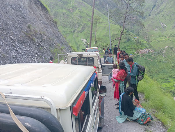 मुगु, ३० साउन । पहिरोले सडक बगाएपछि गमगढी–तारापानी–सोरुकोट सडक दुई सातादेखि अवरुद्ध छ । सोरु गाउँपालिका–८ स्थित आशिधारा खोला भन्ने स्थानमा सडक माथिबाट झरेको पहिरोले सडक बगाएपछि सडक अवरुद्ध भएको हो ।