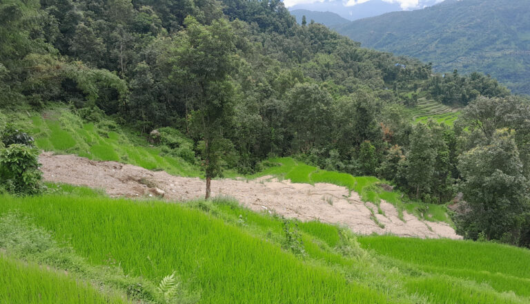 ‘पहिरोले तीन भागमध्ये दुई भाग खेत बगाइसकेको छ । खेत बग्ने क्रम जारी छ’, उनले भने, ‘६ जनाको परिवार यही धानबालीले टार्दै आएकी थिएँ । पहिरोले खेत नै बगाएपछि कसरी परिवार चलाउने भन्ने पीर लागेको छ ।’