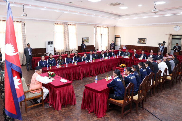 काठमाडौँ, ३ भदौ । प्रधानमन्त्री केपी शर्मा ओलीले रक्षाबन्धनको आज बिहानीका करिब दुुई घण्टा राष्ट्रिय महिला भलिबल टोलीसँग व्यतित गरेका छन् । प्रधानमन्त्री ओली, खेल प्रशिक्षक एवं खेलाडीबीच भलिबलले हालसम्म हासिल गरेका उपलब्धि, थप पूर्वाधार विकास र आगामी अन्तर्राष्ट्रिय खेलमा नेपालले कसरी विजय सुनिश्चित गर्न सक्छ भन्ने विषयमा छलफल भएको थियो ।