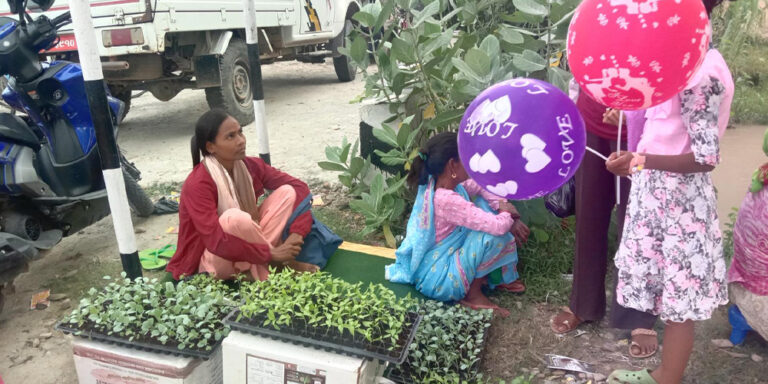 भजनी (कैलाली), ५ भदौ । आफ्नो स्वामित्वमा रहेको जमिनमा सागसब्जीका बेर्ना लगाएकी टीकापुर नगरपालिका–१ वनगाँउकी सरिता चौधरी सातामा दुई दिन बेर्ना बेच्न टीकापुर कृषि बजार पुग्छिन् ।