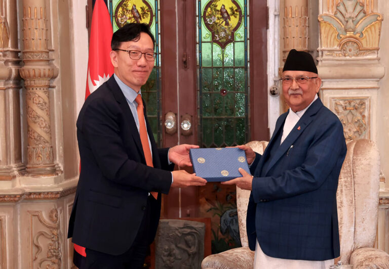 काठमाडौँ, ५ भदौ । प्रधानमन्त्री केपी शर्मा ओलीसँग नेपालका लागि दक्षिण कोरियाका राजदूत पार्क ताइयोङले आज शिष्टाचार भेट गरेका छन् ।