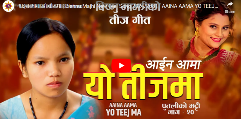 ‘आइन आमा यो तीजमा’ बोलको गतिको भिडिओ आज (शनिबार) सपना म्युजिक इण्डष्ट्रिज नामक युट्युब च्यानलमार्फत सार्वजनिक गरिएको हो ।