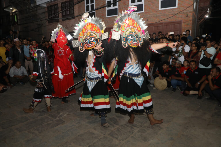 भक्तपुर, ९ भदौ । गाईजात्राको भोलिपल्ट रातिदेखि मध्यपुरथिमि नगरपालिकाभित्र फरक–फरक सहरमा तान्त्रिक विधि एवं दैवी शक्ति प्रकट गर्दै सञ्चालन भएका भैरव, महाकाली, निलबाराहीलगायतको देवीदेवता नाच आज बिहानबाट सम्पन्न भएको छ ।