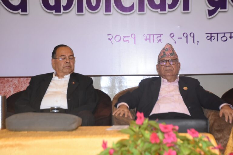 ‘सत्ताबाट ओर्लिएपछि हामीसँग मिटिङ गरौं कि गरौं, अझ एकता गरौंमा लागेको छ । हामीले सबै कुरा बुझौं, कसको हुट्हुटी के हुन् ? को– किन तिल्मिलाईरहेको छ ? को किन घमण्डका घैटा बोकेर हिँडिरहेको छ ?’ उनले भने, ‘यी चिजहरुलाई गहिरो गरी हामीले बुझ्नुपर्छ । हाम्रो पार्टी आफ्नै ढंगले स्वतन्त्र विचार, नीति, सिद्धान्त, कार्यक्रम र लक्ष्य बोकेको पार्टी हो । हामीले अरुको उट्पट्याङमा लाग्नुपर्ने केही पनि जरुरत छैन ।’ Photo By: Mukunda Kalikote/Reporters Nepal