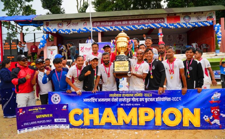 काठमाडौं, १० भदौ । अन्तर्राष्ट्रिय आमन्त्रण दोस्रो ताप्लेजुङ गोल्डकपको उपाधि सगरमाथा युथ क्लब मोरङले जितेको छ । सलहेस यूथ क्लब सिरहालाई १–० गोल अन्तरले पराजित गर्दै मोरङले उपाधि जितेको हो । सगरमाथा युथ क्लबलाई उपाधिका लागि खेलको तीन मिनेटमै विजय भुजेलले गरेको गोल नै निर्णायक बन्यो ।