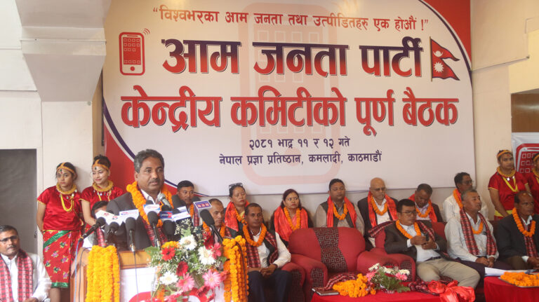 काठमाडौँ, ११ भदौ । आम जनता पार्टीले देशलाई विकास र समृद्धिको पथमा लैजान सम्पूर्ण नेपाली एकताबद्ध भएर लाग्नुपर्ने आवश्यकता औँल्याएको छ ।