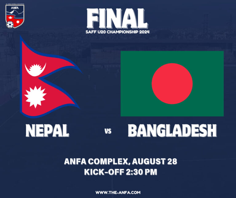 सातदोबाटोस्थित अखिल नेपाल फुटबल सङ्घ (एन्फा) कम्प्लेक्सको खेल मैदानमा हुने फाइनल भिडन्तमा दुवै टोलीले उपाधि जित्ने लक्ष्यका साथ मैदानमा उत्रदै छन् ।