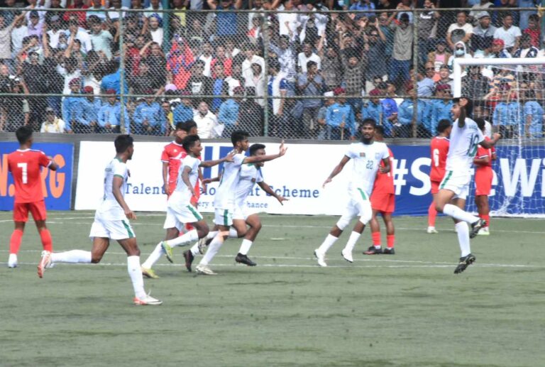 बंगलादेशका अग्रतामा मिराजुल इस्लामले गोल गरेका हुन् । तस्विर : मुकुन्द कालिकोटे, रिपोर्टर्स नेपाल डटकम